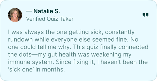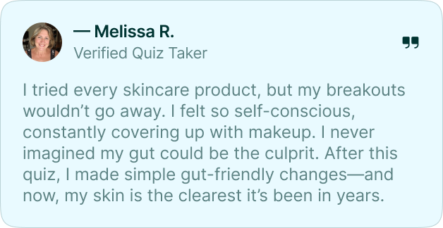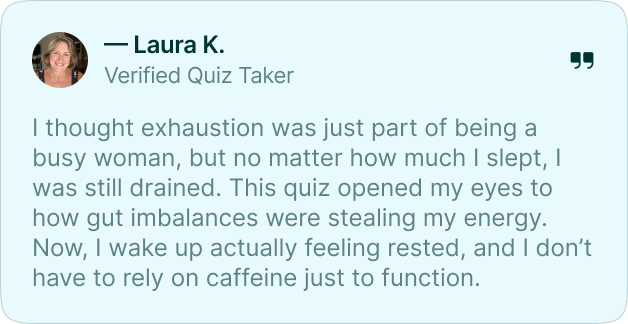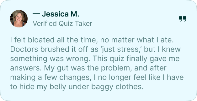 Our 2-minute quiz is designed to help identify potential gut imbalances that may be contributing to symptoms like bloating, fatigue, skin issues, and more.
